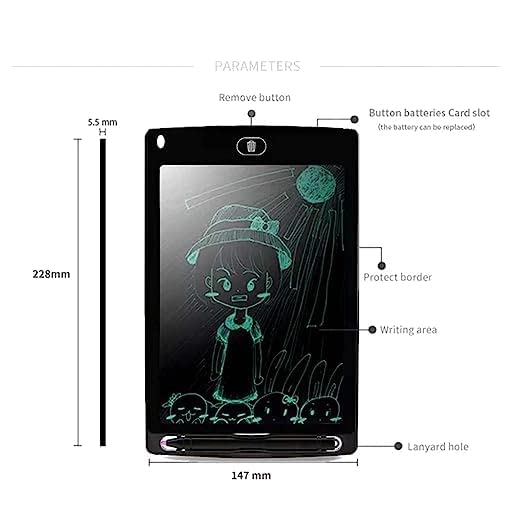 New LCD Writing Technology, Writing and Drawing experience is just like pen on the paper. Suitable for kids writing, drawing, office memo board, fridge message board and as a communication tool. Easy to Use: Writing or drawing with the included plastic stylus or any other suitable instrument. No need to find a pen or pencil again. You can erase your image or content with the touch of the Delete button, very Simple. Environmental Protection: This product does not require any power to create or maintain an image, no on/off button is necessary. By Pressing the erase button only needs a small amount of power to clear the image or content. With Replaceable coin-cell battery inside and can work for nearly 2 years, Environment friendly