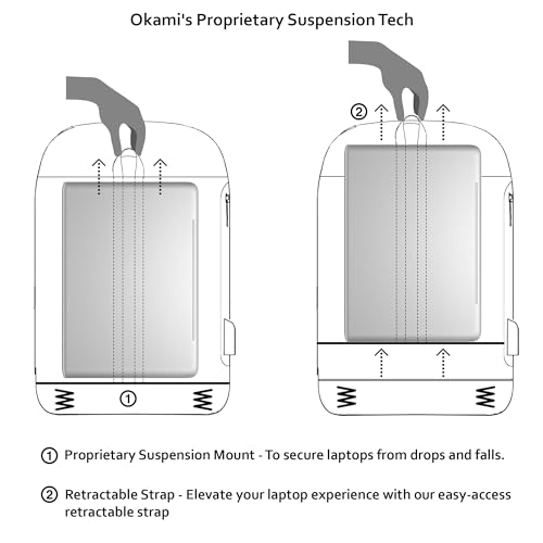 Okami’s proprietary suspension mounted technology and retractable strap, your laptop always has a snug fit and is protected from drops and falls.