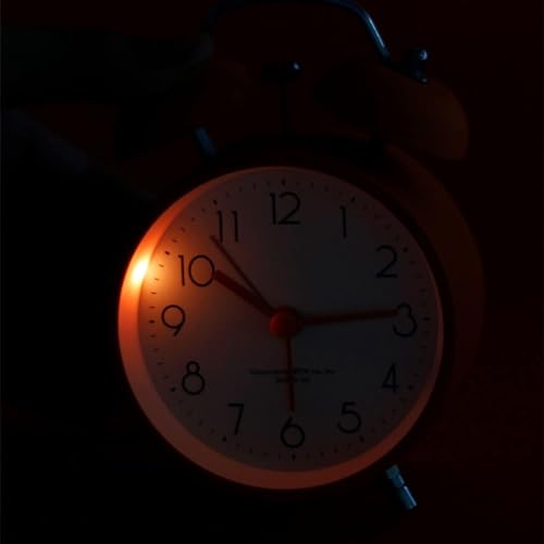 ⏰EASY TO SET : Battery Operated. This alarm clock has four buttons: Two Knob to set clock and alarm time, one alarm switch and one nightlight button. This alarm clock is very easy to set and use, suitable for most people.; ⏰RETRO STYLE: Beautiful vintage twin bell alarm clock, harmonious collocate with your desk and bedroom, retro style takes you back to 80’s.