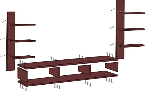Ample Storage Space is Ensured by Large Countertops. Wall-Mount Design Requires Little Room and Frees Up Priceless Floor Space. Books, decorative objects, and 4 fully functional floating open shelves are intended to be kept in the middle compartment together with your set-top box.