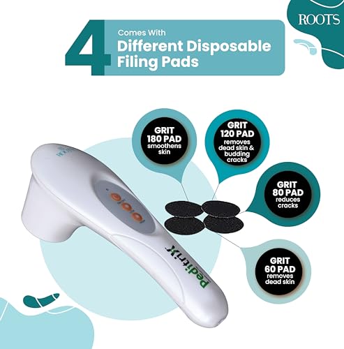 Roots – Pedicure Kit for Women – Peditrix Electric Professional Foot Filer – Foot Care Kit with Disposable Filing Pad