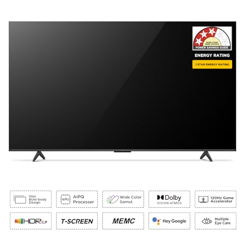 Display: QLED Panel| Dolby-Vision | Wide Color Gamut | Dynamic Color Enhancement | HDR 10+ | T-Screen | AiPQ Processor |MEMC | 178 Degree Wide Viewing Angle | Micro Dimming | Slim & Uni Body Design