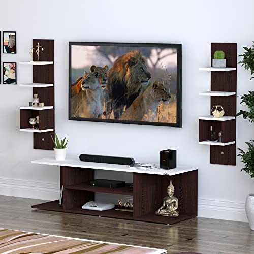 This TV entertainment unit is suitable for your living room and bedroom. Showcase and organize your TV wall unit or set-top box unit securely and make your home wall more beautiful. It is an easy-installing compact shelf set for a TV, set-top box, or gift items, that uses small space and gives your living room a standard & pleasant look.