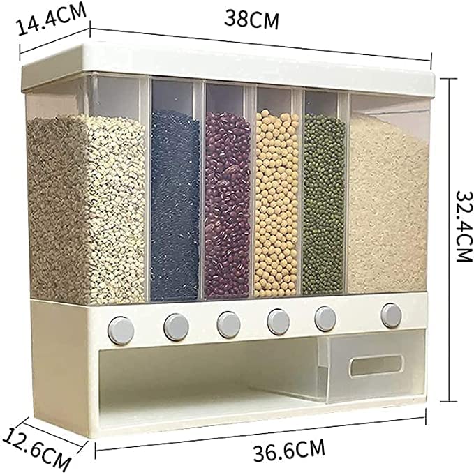 ★ Transparent visual design, easy to distinguish what is in the container and check the grain balance at any time. 6-Grid design, you can place multi cereal. Comes with a plastic bowl, place it under the dispenser and press the button to get the controlled part