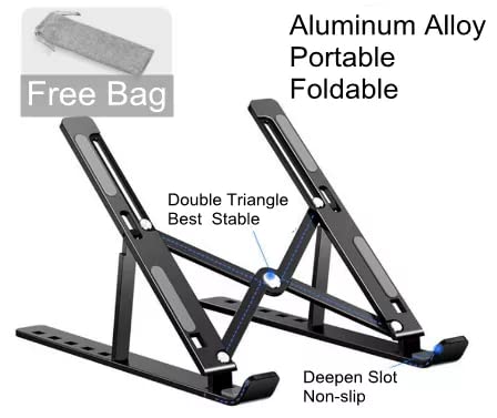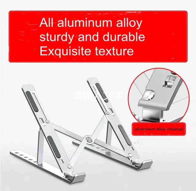 HB Plus Adjustable and Ergonomic: The laptop stand has 7 adjustable heights that can adjust to a comfortable operating angle and height based on your actual need, lets you fix posture and easy typingThis Aluminum Portable Laptop Stand is fits most laptops from 10 to 15.6 inches. It also fits for phone, tablets, kindle, books from 6 inches to 12.9 inchesHB Plus Creative portable foldable design, it weighs only 0.6 lbs and come with a portable storage bag to make it easy to carry and use at the home, office, or other placesThis Laptop Holder is sturdy enough to hold up 88 lbs weight on top. Increased 10 non-slip rubber pads to protect your device from scratching or sliding