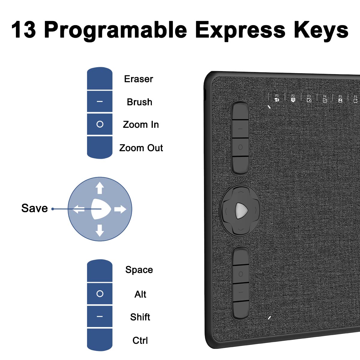 13+16 Programmable Express KeysUnique Texture CoversheetTilt-support & Battery-free Pen