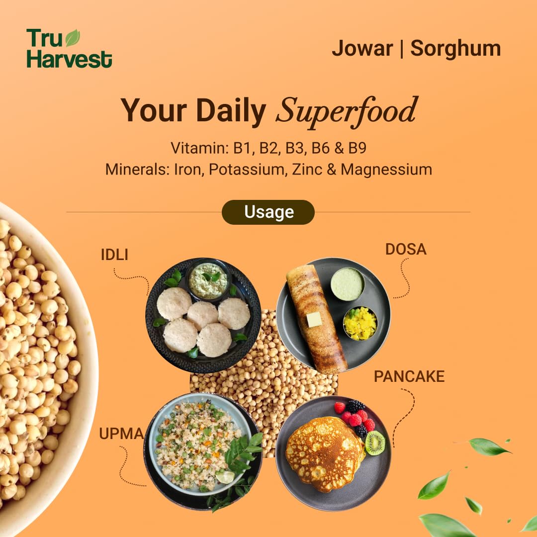 Sorghum: Tru Harvest Jowar offers a superior quality sorghum porridge, meticulously harvested and processed for top-notch quality.