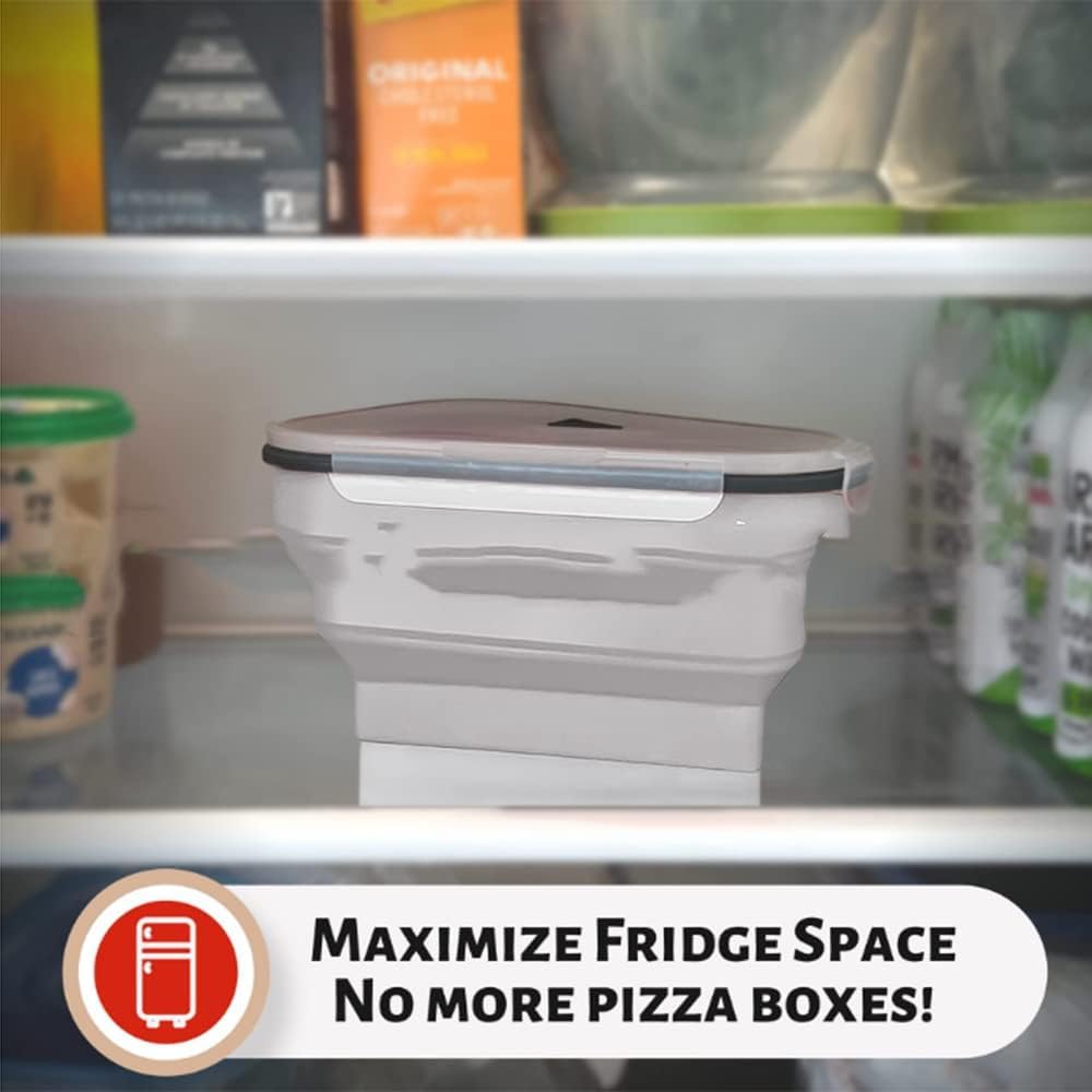 ||🍕|| Wide Usage: This expandable pizza storage containers is durable and lightweight, so it is easy to carry. This pizza box is a smart leftover container for pizza, cheese, sandwich, pie, ham, bacon, vegetables, fruits and so on. It is perfect for kitchen, camping, BBQ, picnics, travel or RVs etc.