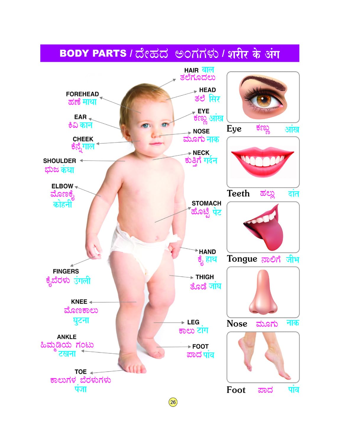 Introducing our ‘All in One English Kannada Board Book,’ a captivating and educational journey designed to ignite the curiosity of young minds. This 32-page A4 size picture board book is a treasure trove of essential knowledge, blending entertainment with education to make learning a joyous experience for children. Key Features: English & Kannada Alphabets: A playful exploration of alphabets in both English and Kannada, fostering bilingual literacy from the very beginning. Numbers: Engage in the world of numbers with vibrant illustrations and simple explanations, laying the foundation for mathematical understanding. Rhymes: Delightful rhymes that not only entertain but also enhance language skills and rhythm recognition. Fruits, Vegetables, Wild Animals, Domestic & Pet Animals, Birds, Flowers: Discover the wonders of nature with colorful depictions of flora and fauna, promoting early awareness and vocabulary development. Colours: Dive into a spectrum of hues, making learning about colors a visual feast. Vehicles, Sea Animals, Insects: An exciting journey through modes of transport, marine life, and the fascinating world of insects. Parts of Body: Learn about the human body with clear and child-friendly illustrations, making anatomy accessible to young learners. Amphibians & Reptiles: Uncover the diversity of amphibians and reptiles through engaging visuals and informative content. Good Habits: Encourage positive behavior and manners through relatable examples, fostering social and emotional development. Our Helpers: Acknowledge and appreciate the roles of various community helpers, instilling a sense of community and cooperation. Festivals: Explore the rich tapestry of Indian culture by introducing major festivals, promoting cultural understanding and inclusivity. Actions: An interactive section illustrating various actions, enhancing language skills and expanding vocabulary. Indian Currency, Leaders & Symbols: Introduce the concept of currency, prominent leaders, and national symbols, cultivating a sense of national pride. Stationery: Familiarize little ones with essential stationery items, preparing them for early academic experiences. Foods & Beverages: Discover a variety of foods and beverages, encouraging healthy eating habits. Moral Stories: Conclude the adventure with moral stories that impart valuable life lessons, fostering character development. This ‘All in One English – Kannada Board Book’ is more than just a book; it’s a comprehensive companion for your child’s early learning journey, providing a solid foundation for a lifetime of curiosity and knowledge. Make learning an adventure with this all-encompassing educational masterpiece!