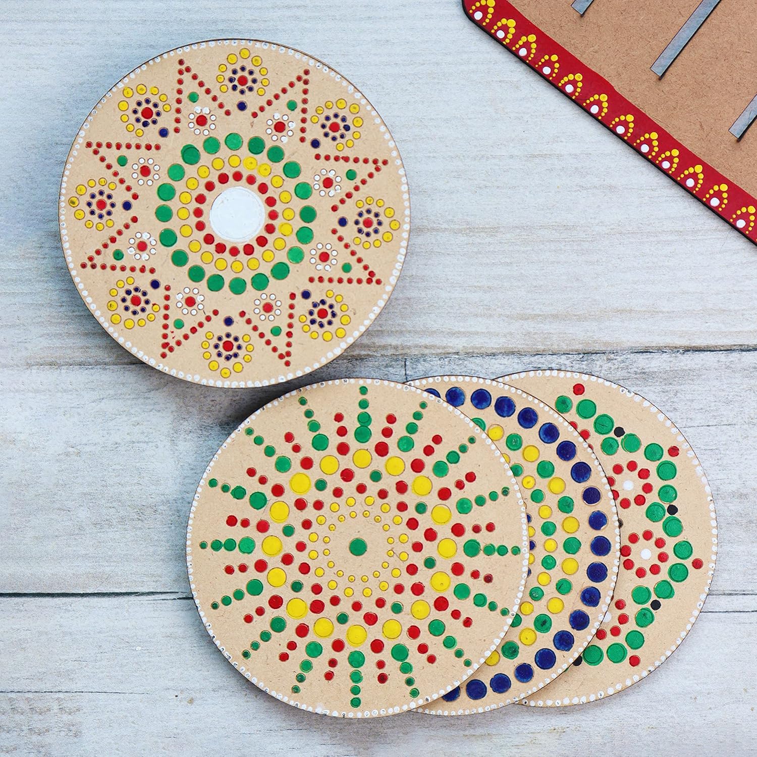 π¨ Dot Mandala Kit is planned specially for those who are looking to explore Mandala Art form as beginner. Paint your own mandala art coasters and keep this art piece on your dining table as decoration material.