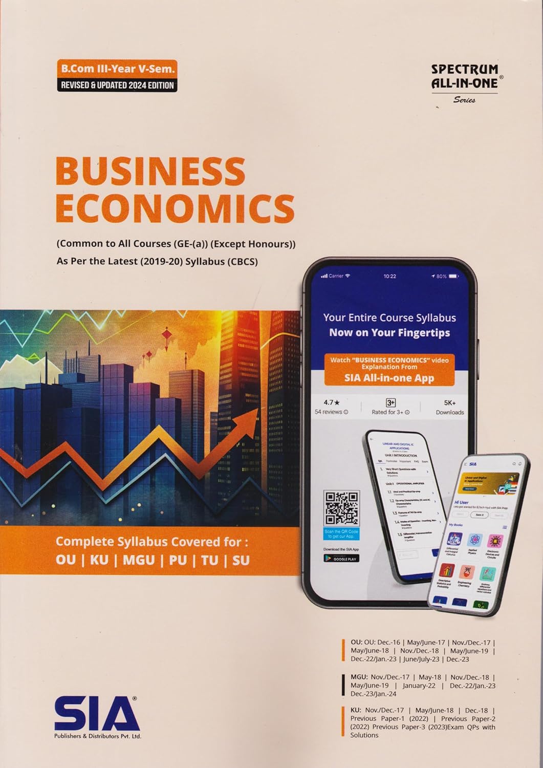 Business Economics (Except Honours) As Per the Latest (2019-20) Syllabus (CBCS) (Common to all Courses (GE-(a)) Revised & Updated 2024 Edition Complete Syllabus covered for: OU/ KU/ MGU/ PU/ TU/ SU. OU-Dec-16/ May-June-17/ Nov-Dec-17/ May-June-18/ Nov-Dec-18/ May-June-19/ Dec-22/ Jan-23/ June-July-23/ Dec-23. MGU-Nov-Dec-17/ May-18/ Nov-Dec-18/ May-June-19/ January-22/ Dec-22/ Jan-23/ Dec-23/ Jan-24. KU-Nov-Dec-17/ May-June-18/ Dec-18/ Previous Paper-1 (2022)/ Previous Paper-2 (2022) Previous Paper-3(2023) Exam QPs with Solutions