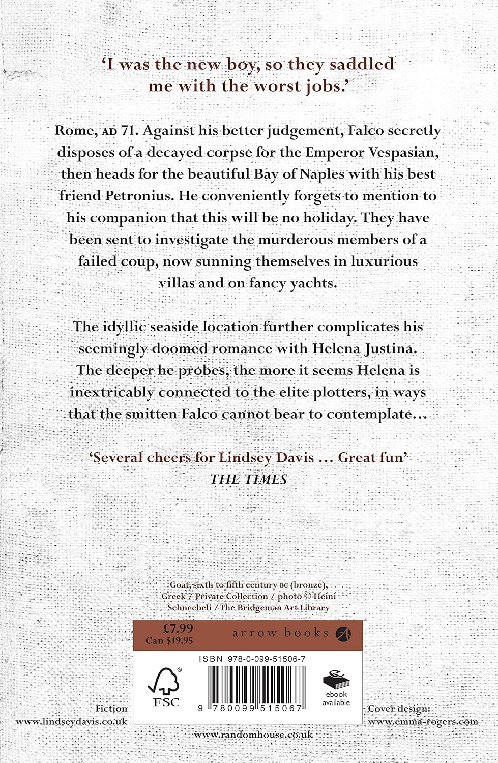 They have been sent to investigate the murderous members of a failed coup, now sunning themselves in luxurious villas and on fancy yachts. The idyllic seaside location further complicates his seemingly doomed romance with Helena Justina.